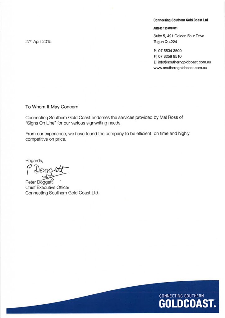 Signs Online are always efficient in response, quality and delivery of requests. Mal provides exceptionally high quality products, always goes above and beyond on all orders and never fails to have a smile on his face! We are always happy to use their services.